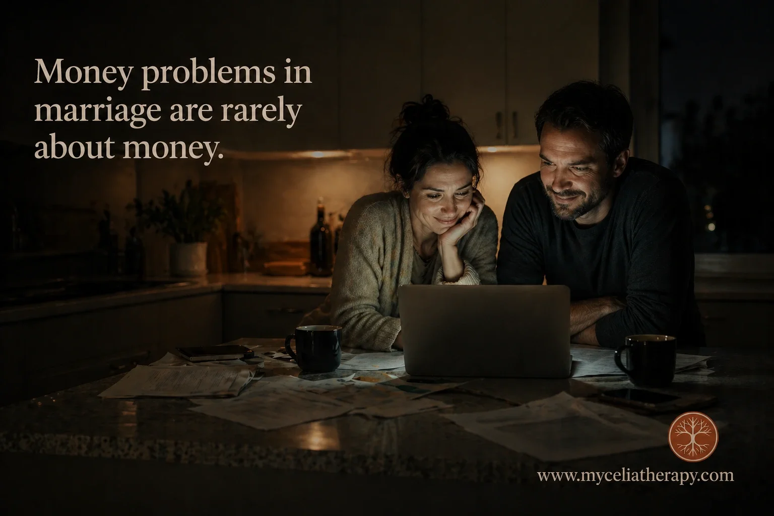 Couples counseling for money issues, in my practice, doesn't start with a budget. It starts with a question most couples have never been asked: