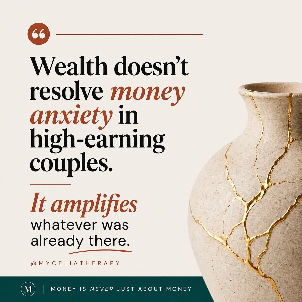 Couples with aligned money narratives, a shared definition of "enough," and trust experience money as stabilizing, even at very high levels. Couples without those experience money as pressure, also at very high levels.